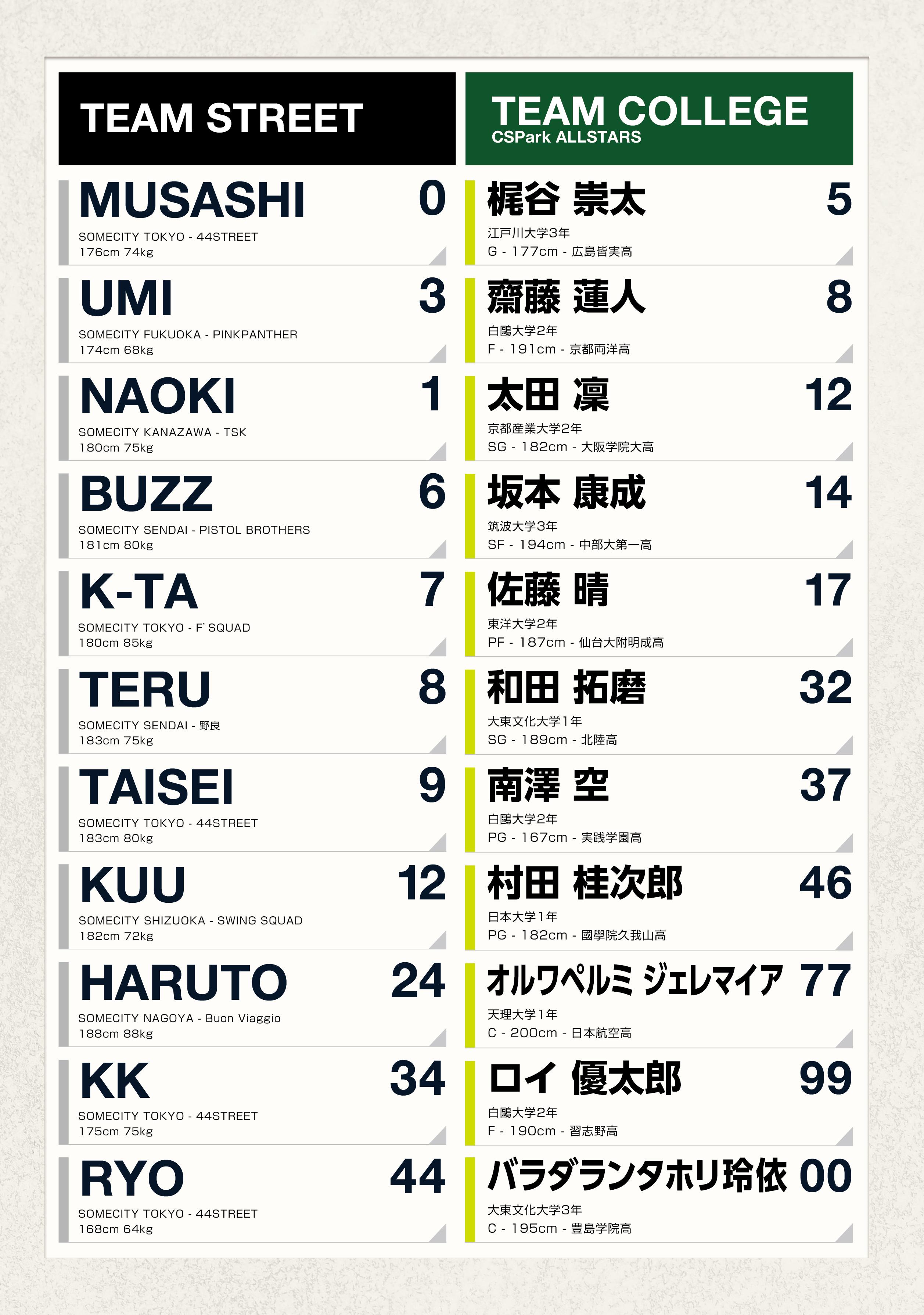 STREET (ストリートボーラー選抜) vs COLLEGE (CSPark ALLSTARS / 大学生選抜)による一年に一度のビッグイベント!!